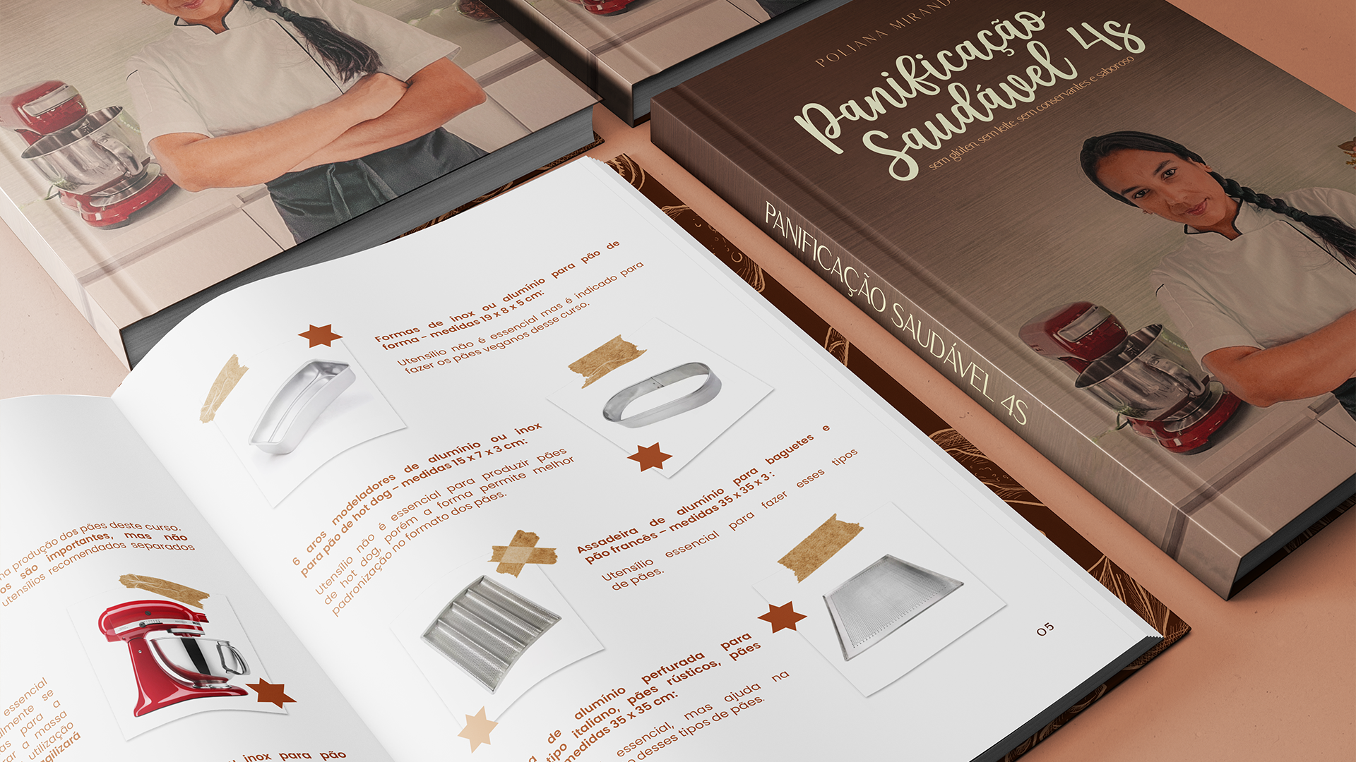 This material was developed in collaboration with Poliana Miranda, the author of the Ebook and the creator of the 4S method (gluten-free, dairy-free, preservative-free, and tasty). With a modern and clean design, Poliana was able to provide her students with informative content that is easy to understand, thus strengthening the connection with health.